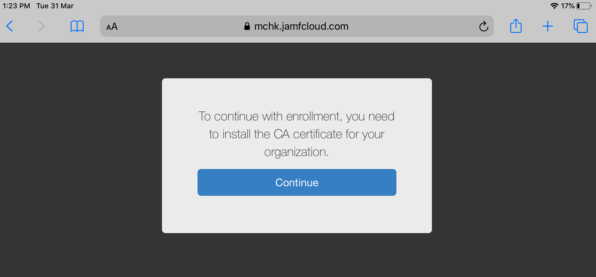 5. Click Continue - To install the CA Certificate profile for MCHK.