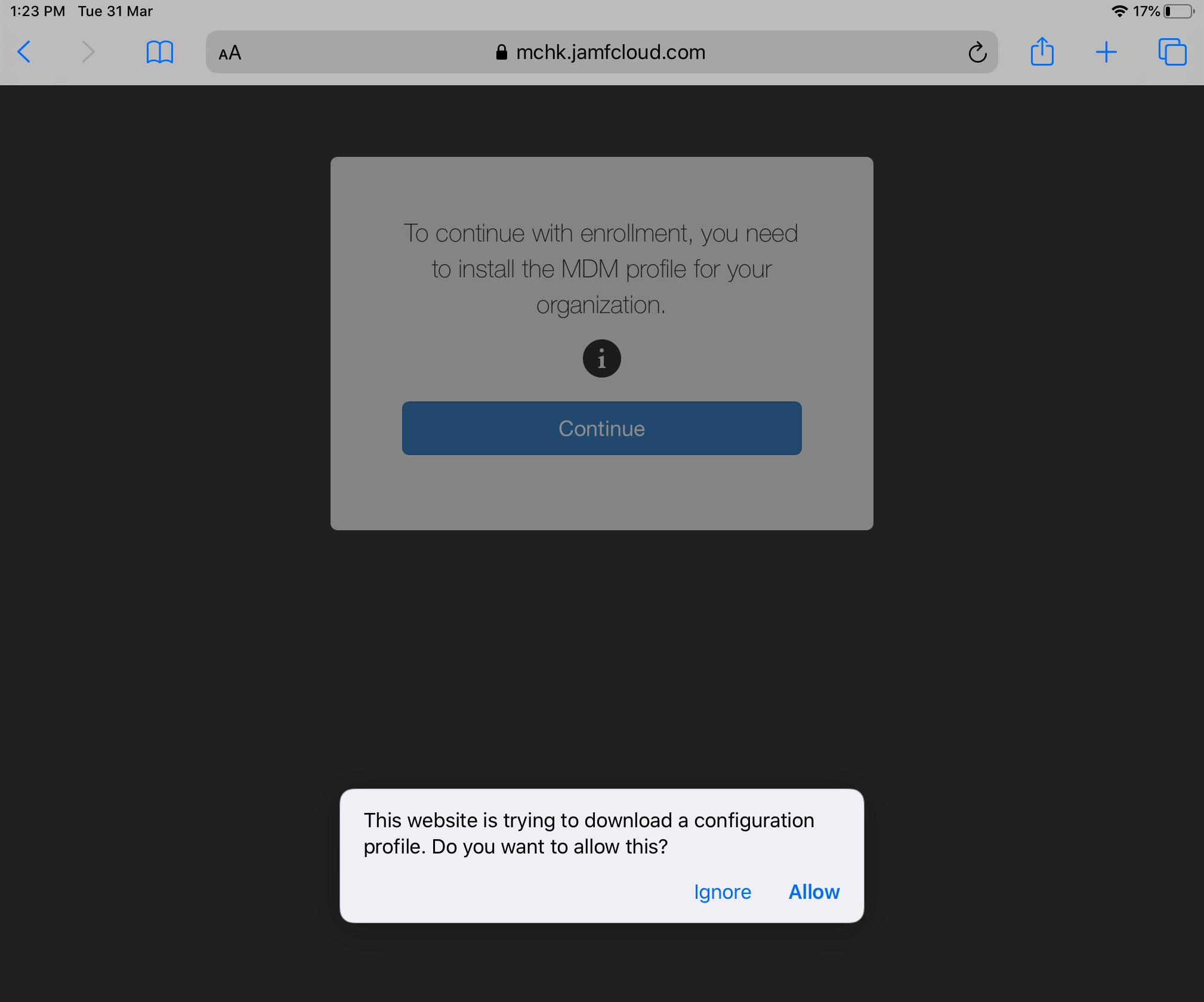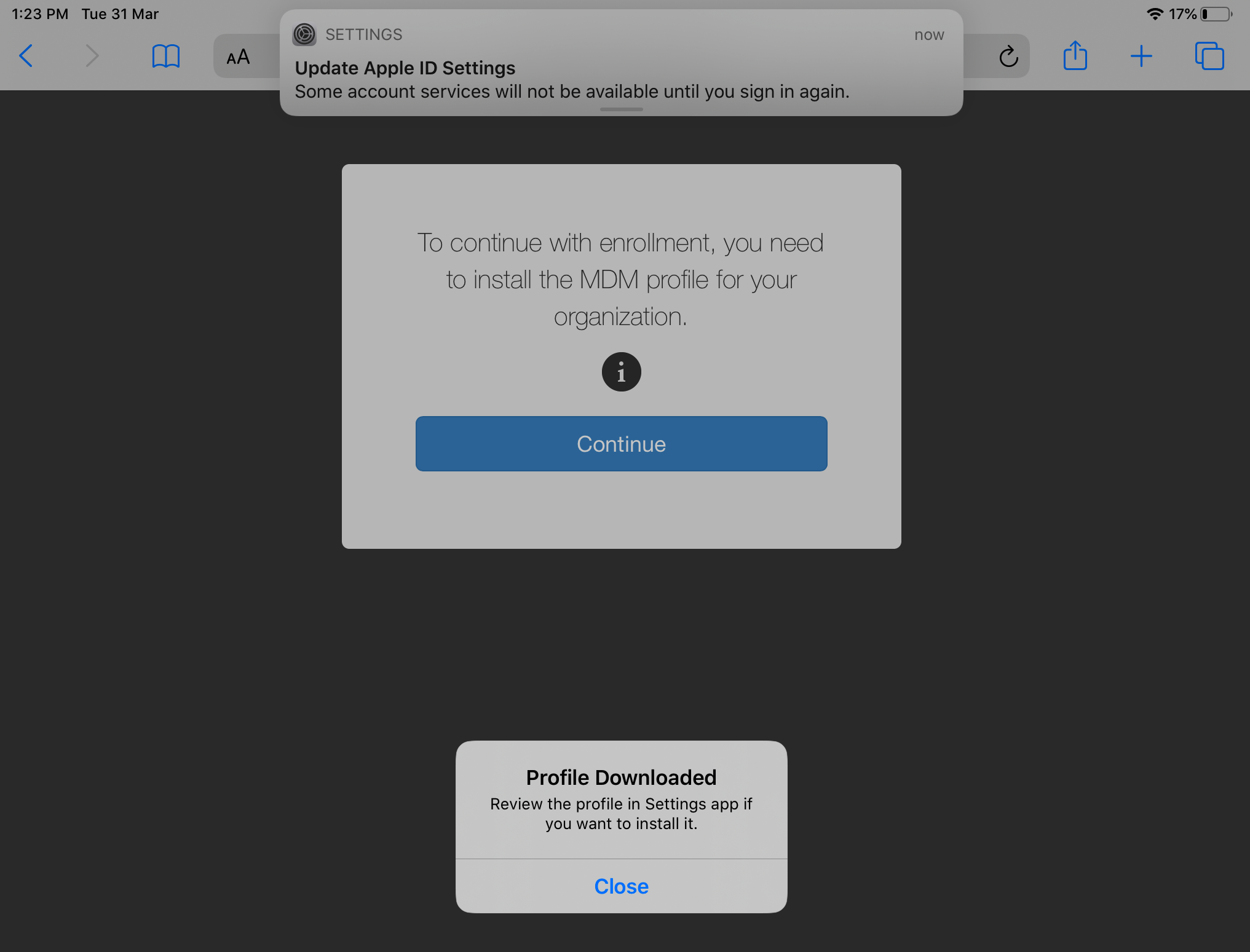 Next , as part of the iPad enrollment process, you need to install 2 profiles: