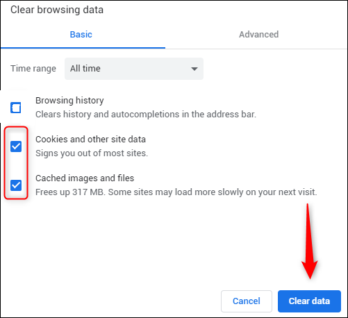 4. Next, check the boxes next to “Cookies And Other Site Data” and “Cached Images And Files.”