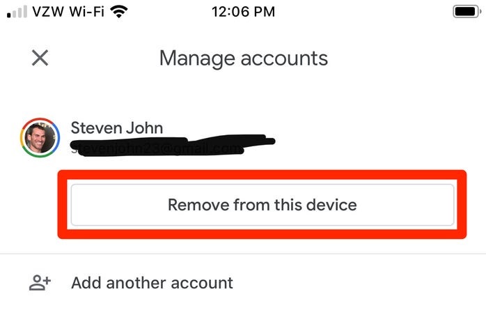 4. Tap "Remove" next to the account you want to logout of
