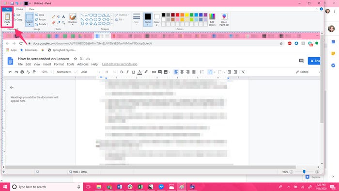 2. Open Paint, or a similar application, and use the Paste function to open the image in the program.