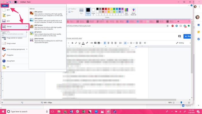 Under "File," click "Save" or Save As" to save the screenshot.