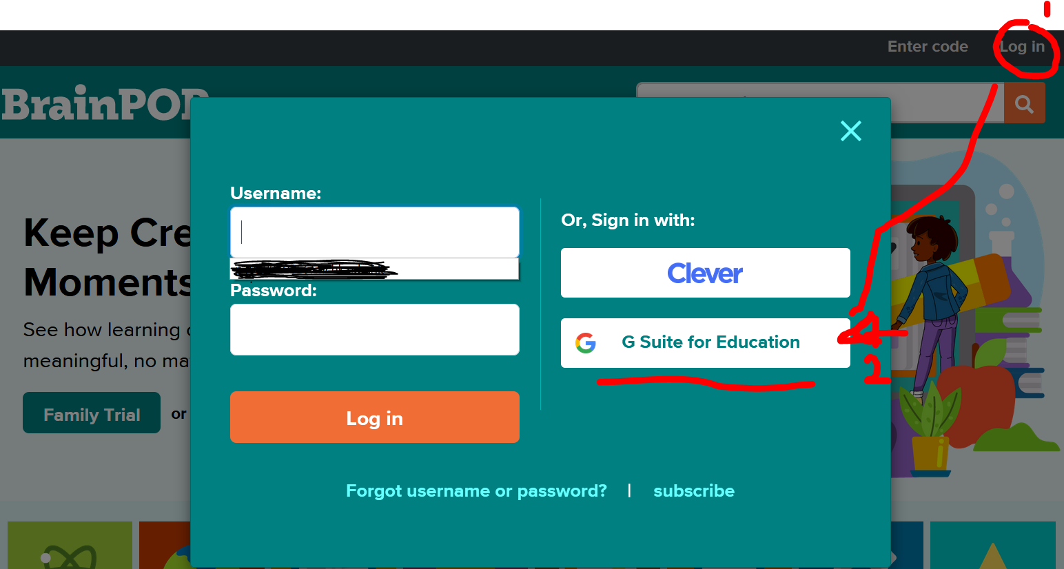 To login to BrainPop using Google: