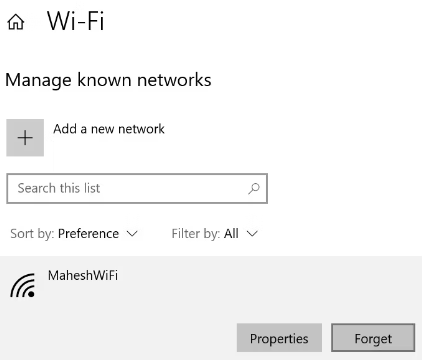 - Find the network you want to forget, click that network in the list, and select Forget.