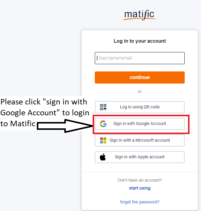 To login to Matific using Google, please do the following: