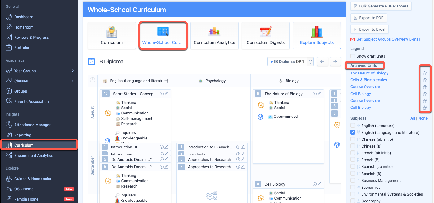 Archived units can be accessed via the Whole School Curriculum; from your left navigational menu panel go to Curriculum > Whole School Curriculum > IB Diploma Years > select your grade; you can find the unit on the right-hand panel under the heading, "ARCHIVED UNITS." To unarchive the unit click on the icon next to the unit name.