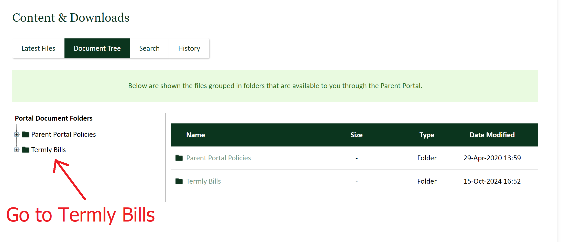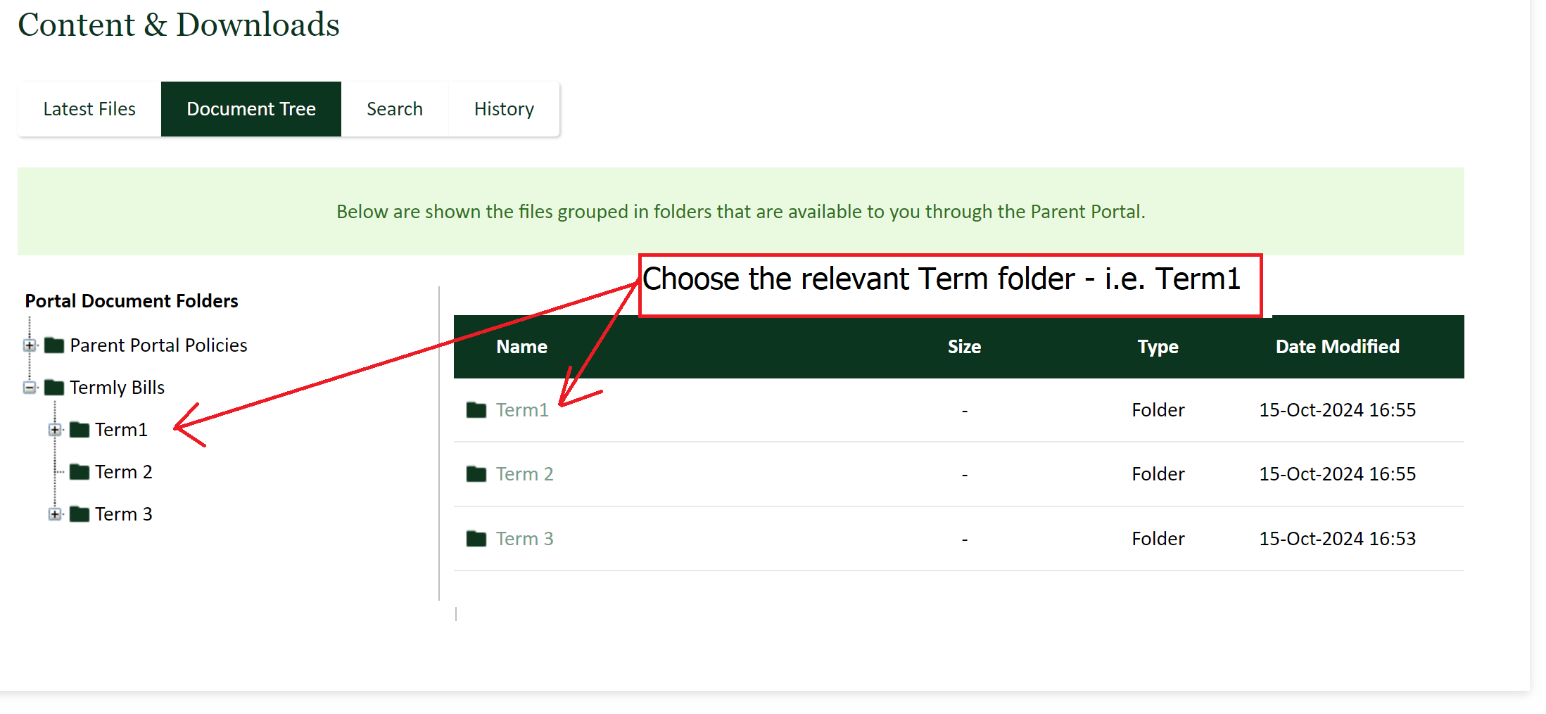 4. Click the relevant term (our example shows you the bill for "Term 1")