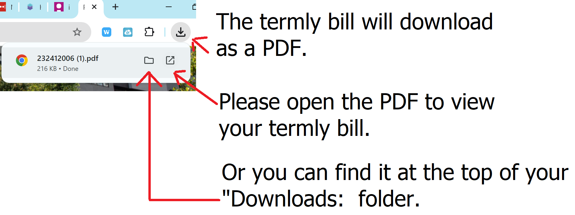 7. The termly bill will download as a PDF. Please open the PDF to view your termly bill.
