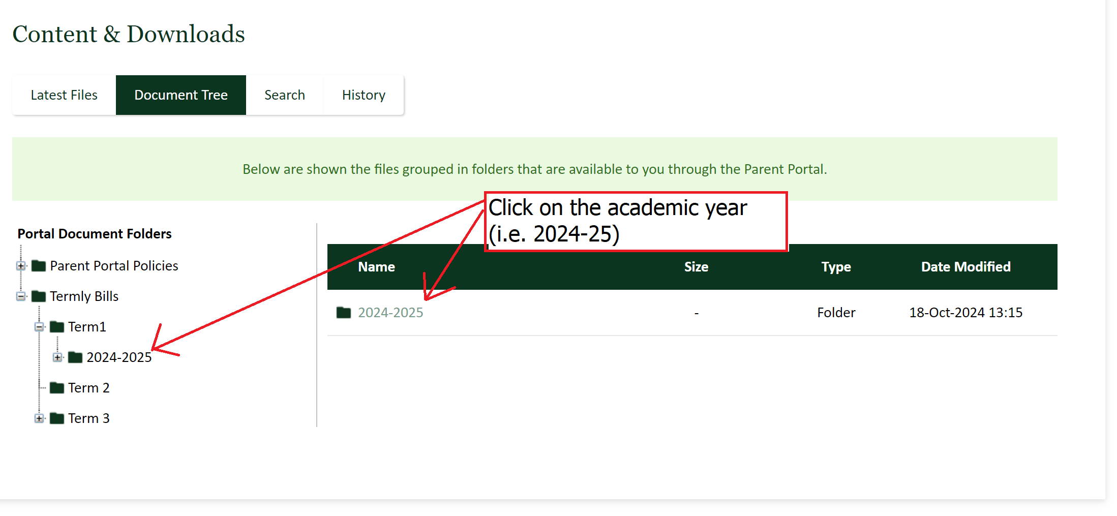5. Click on the Academic Year folder - in our example it is "2024-2025"
