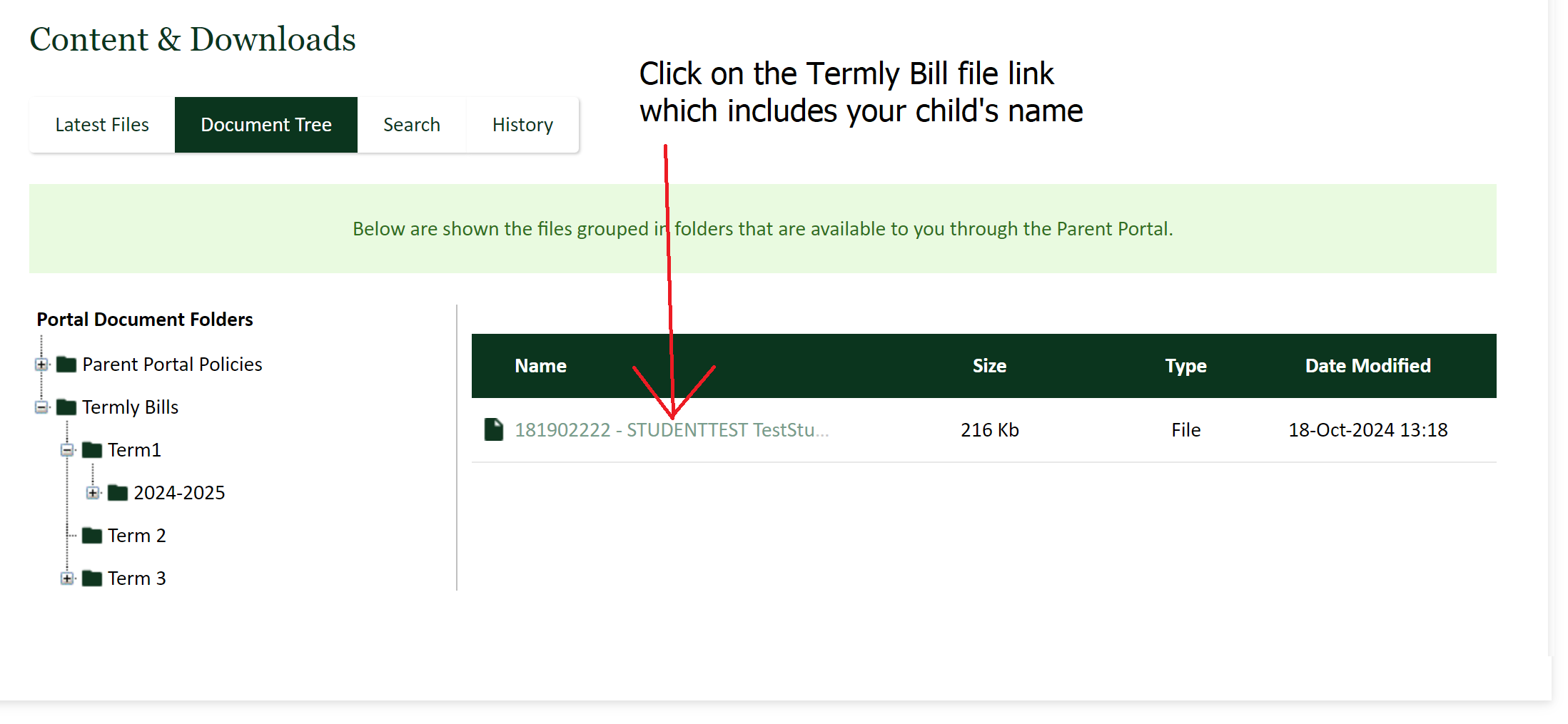6. Click on the Termly Bill file link that contains your child's name