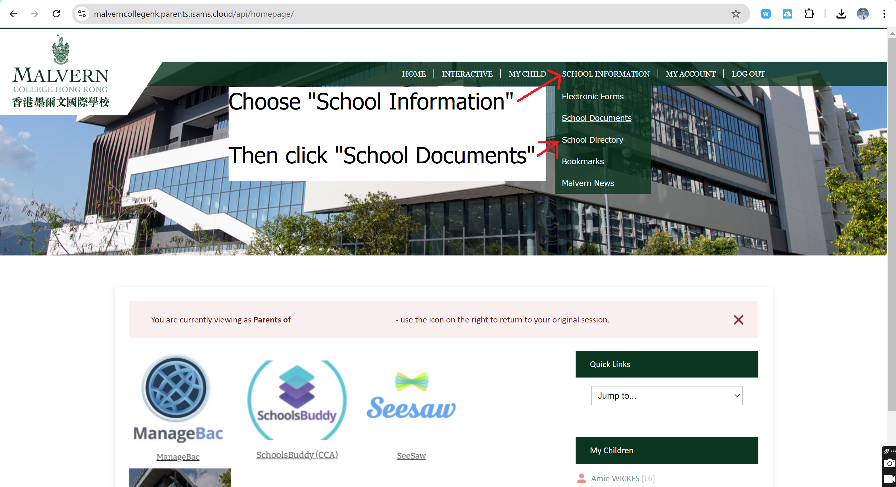 2. Click "School Documents"